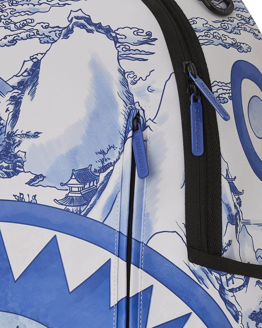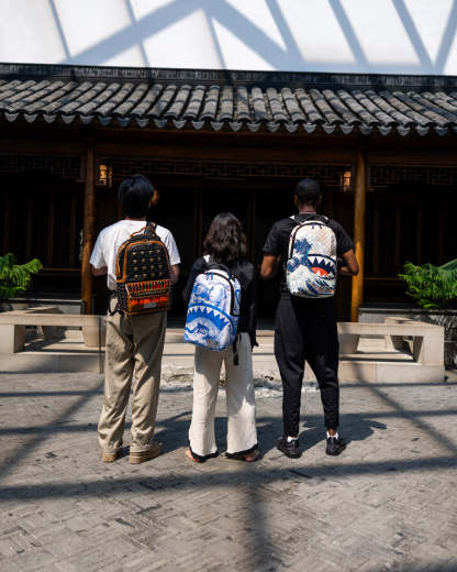 Sprayground¡¯s signature shark mouth emerges from a Chinese landscape adapted from a late 17th-century vase in The M