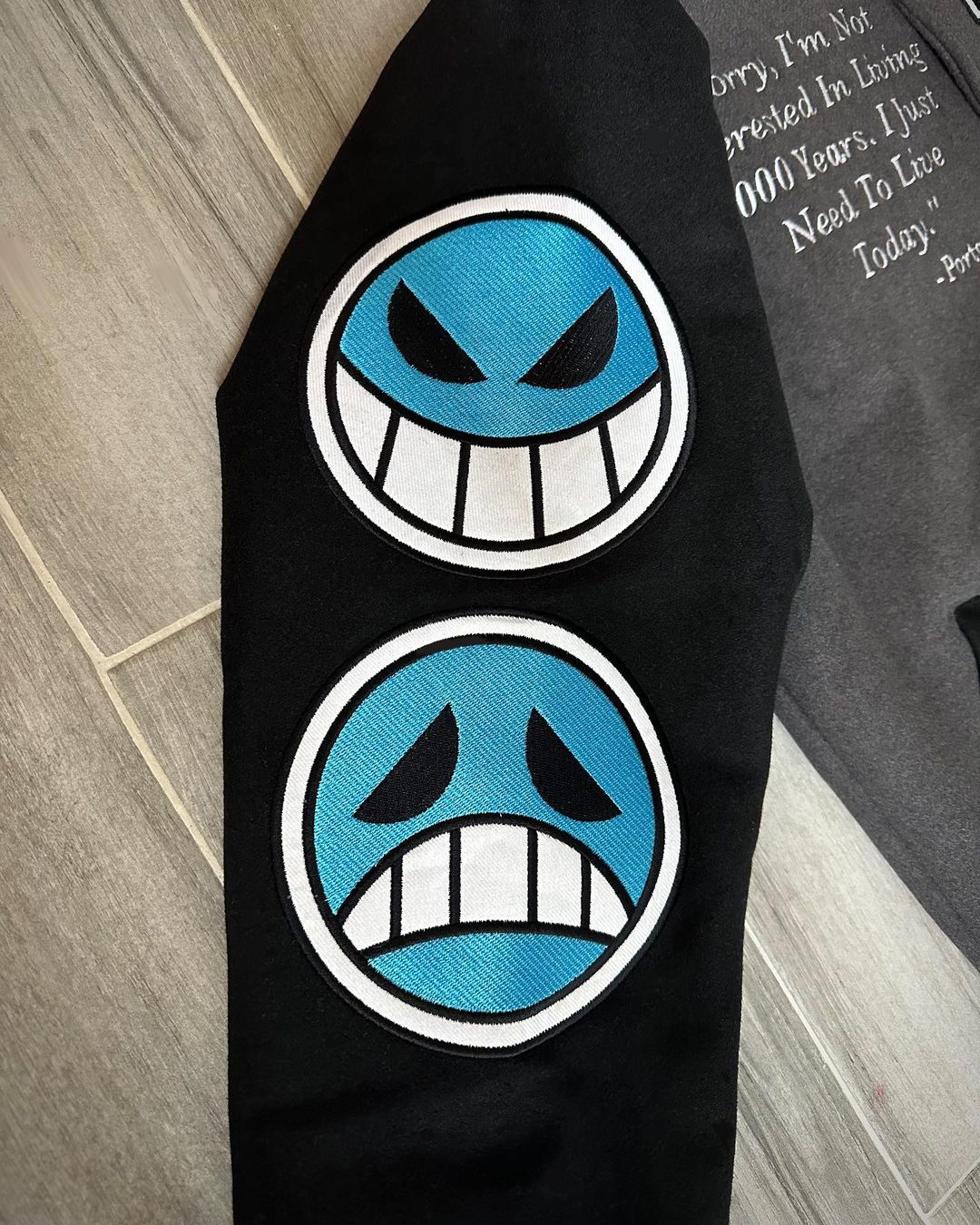 Model 5'10" and 150 lbs, wears L (slight oversize)