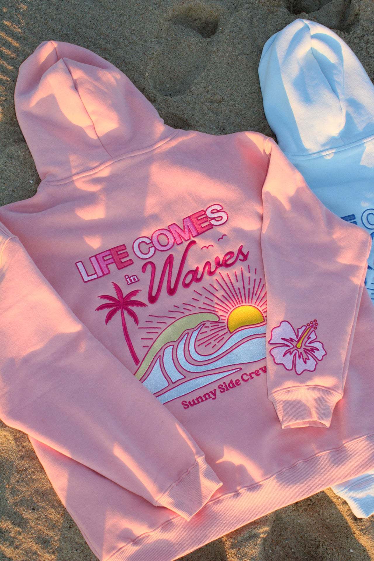 “Life Comes in Waves” Oversized “Blush Shores” Embroidered Hoodie