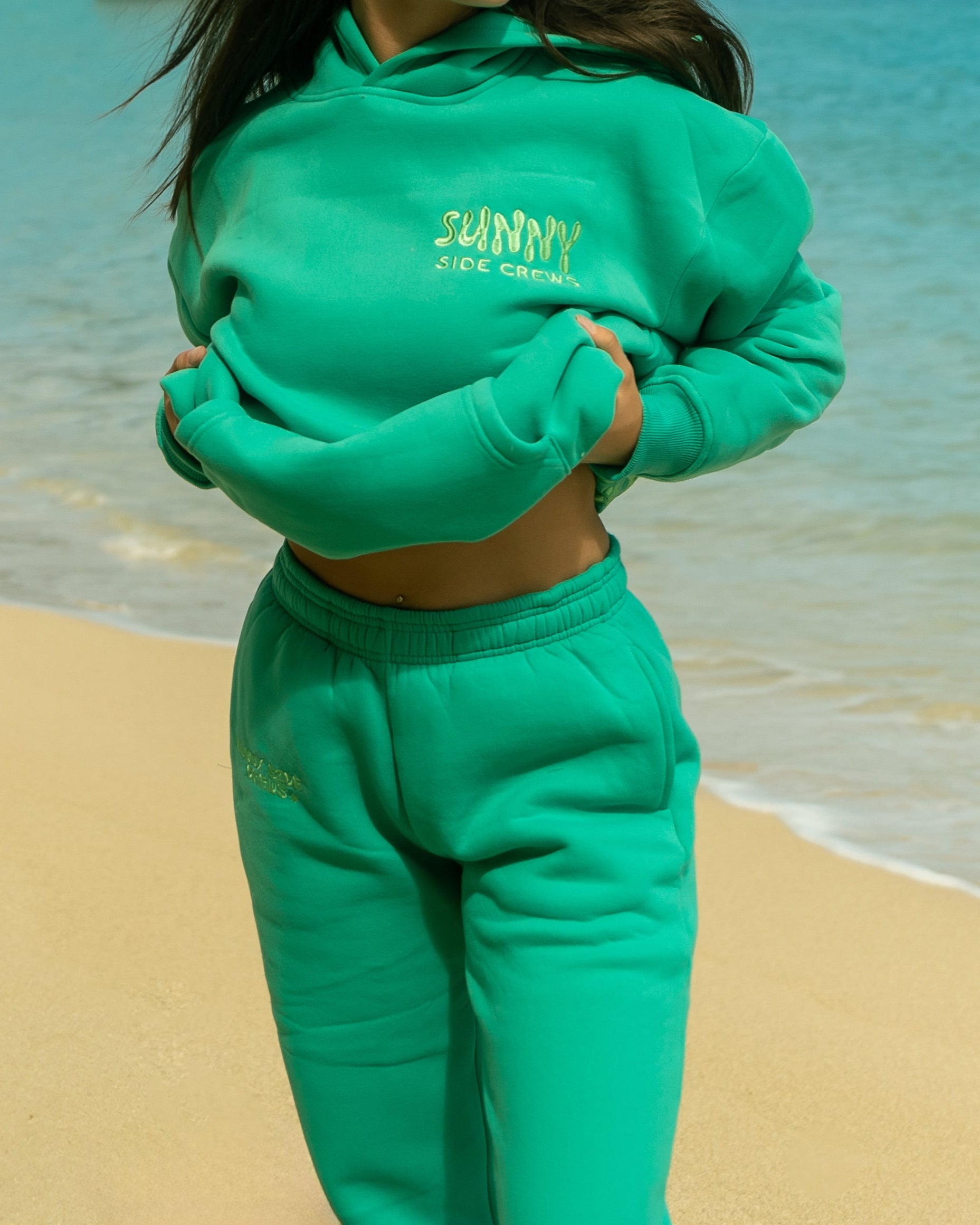 Complete the set with our “Protect the Locals” Oversized “Sea-Glass Green” Embroidered Hoodie