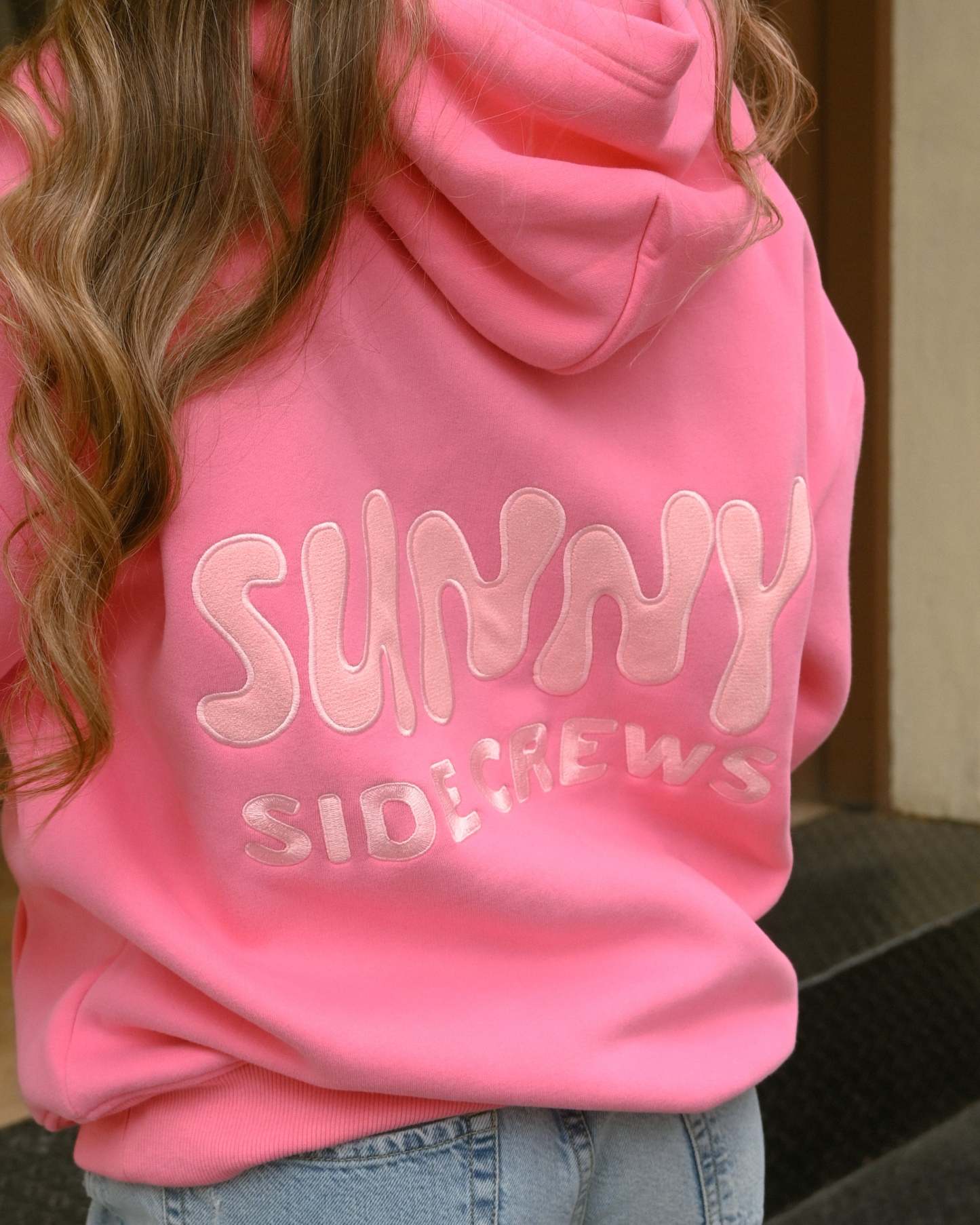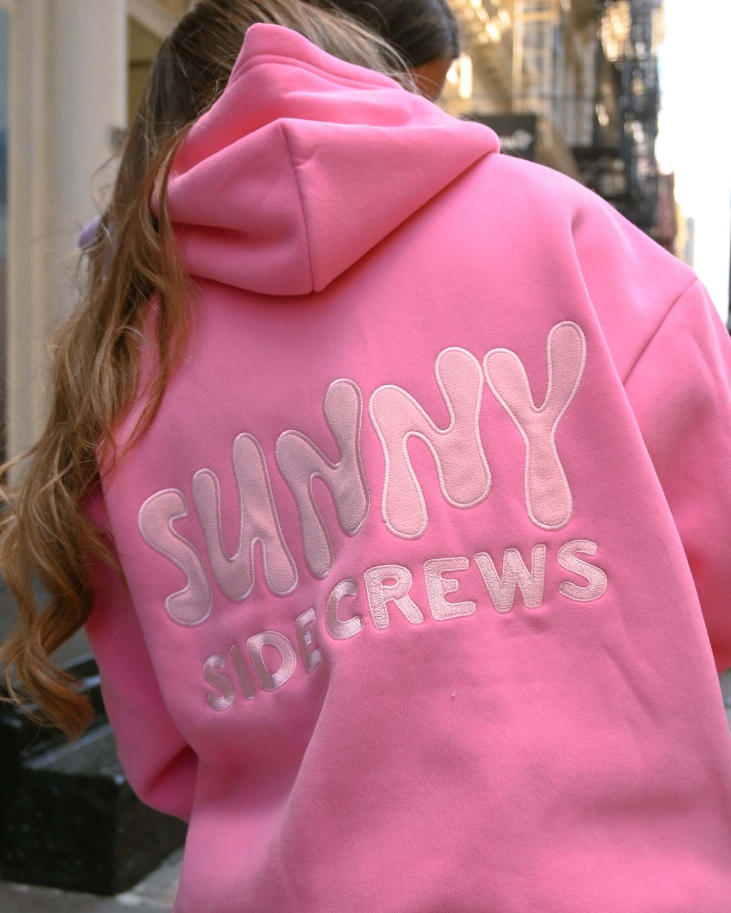 “Sunny Side Crews” Oversized “Flamingo Pink” Embroidered Hoodie
